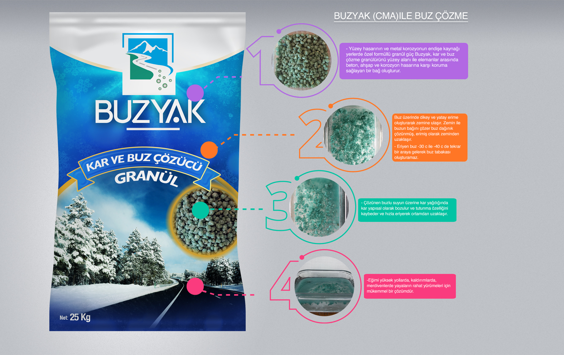 - Buzyak (Kalsiyum Magnezyum Asetat) ve Kalsiyum Magnezyum Klorür ile zenginleştirildi.